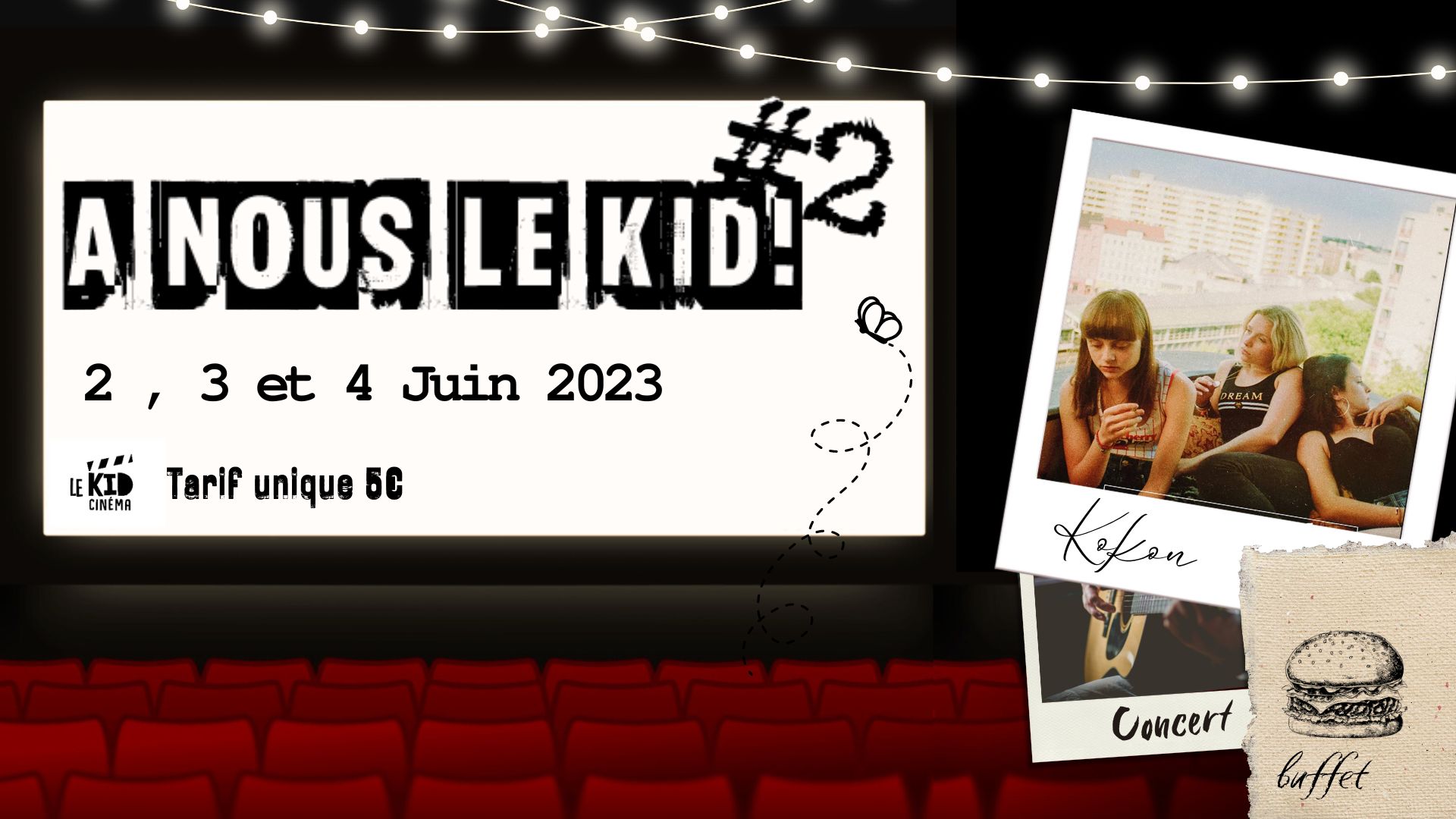 Du 2 au 4 juin 2023 la deuxième édition du Festival A nous Le Kid est de retour à La Flèche. L'événement a la particularité de s'articuler autour de films ("Kokon", "Normale", "Riposte féminine") et d’animations programmés par des lycéens, en partenariat avec Graines d’images, le cinéma Le Kid et l’option cinéma du lycée d’Estournelles-de-Constant.