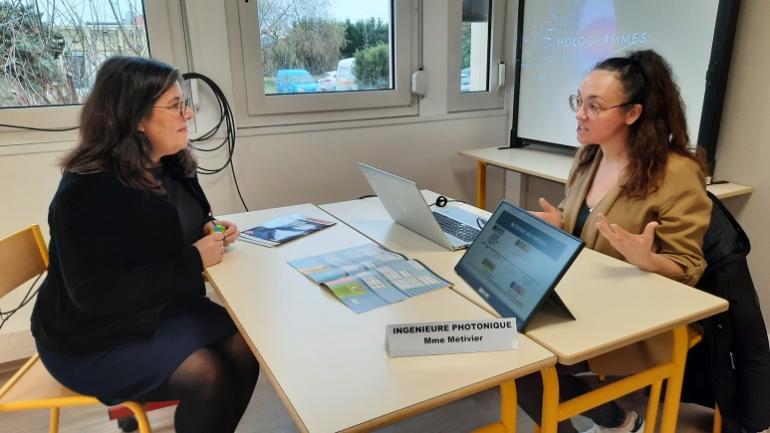 Les élèves ont pu suivre un parcours de découverte des métiers au sein de l’Orientibus (véhicule aménagé avec des tablettes et casques de réalité virtuelle), rencontrer des spécialistes de l’orientation, et échanger avec des professionnels de différentes filières (pompiers, chargée de communication, fleuriste, etc.) et des organismes de formation.