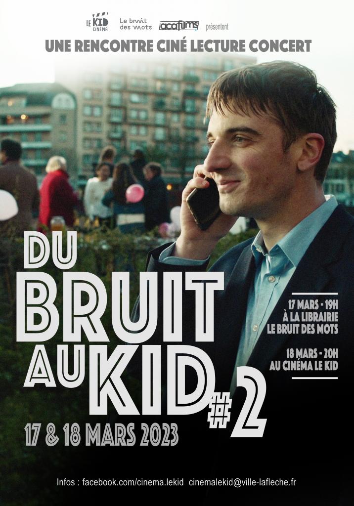 A La Flèche, les vendredi 17 et samedi 18 avril 2023, le cinéma Le Kid, la librairie Le Bruit des Mots et ACAFilms organisent la deuxième édition Du bruit au Kid, un événement culturel mêlant lectures, court-métrages et concert.