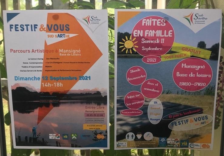 Le dimanche 12 septembre de 14h à 18h se tiendra « Festif & vous en Sud Sarthe » avec des performances artistiques : jazz manouche, danse contemporaine, théâtre d'improvisation, etc.