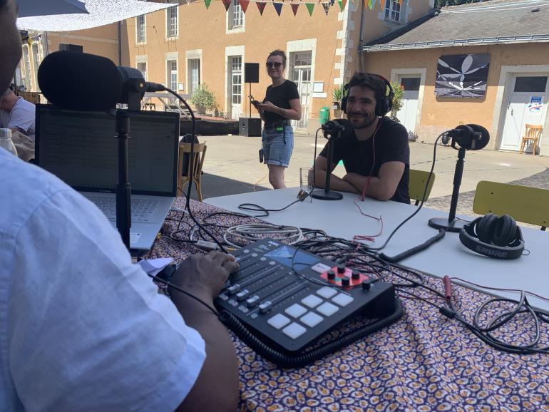 A l'occasion de l'édition 2022 du Festival Les Affranchis, Radio Prévert a organisé un plateau radio dans le Cour du Carroi à La Flèche le samedi 9 juillet 2022. Des artistes, des bénévoles, des élus se sont succédés aux micros de votre radio. Une émission coordonnée, préparée et réalisée avec Clémentine Abélard, responsable de la Communication et des expositions au Carroi et le soutien d'Annabelle Turcaud, présidente de Radio Prévert.