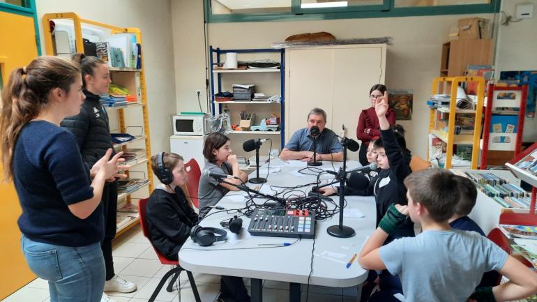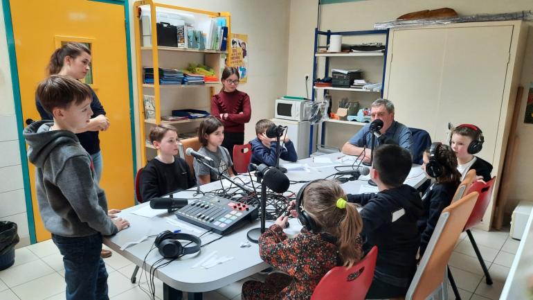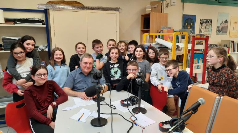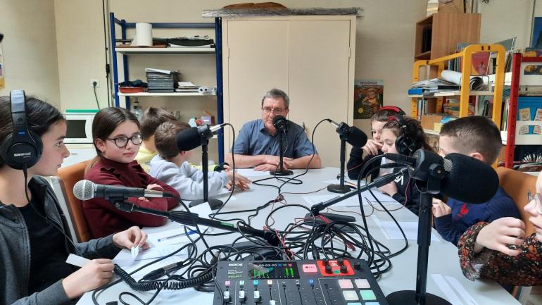 En honorant l'invitation des radioteurs de l'école des Tilleuls de Crosmières, Jean-Yves Denis ne s'attendait sûrement pas à échanger pendant une heure avec les intervieweurs du jour. L'émission devait essentiellement porter sur le projet d'épicerie-bistrot en cours de réalisation dans la commune. Finalement, elle s'est transformée en interpellation tous azimuts du premier magistrat de Crosmières par les radioteurs sur des thématiques variées : vie institutionnelle, les commerces, les infrastructures pour les enfants et les jeunes, l'histoire de la commune, etc. Bref un moment d'éveil à la citoyenneté et de démocratie participative. On en redemande. D'ailleurs Jean-Yves Denis est prêt à renouveler l'exercice. A suivre...