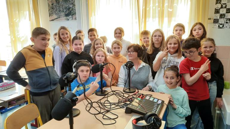 Les élèves de CM1 - CM2 de l'école de Villaines-sous-Malicorne ont été les acteurs de l'atelier Journalisme du 2 mai au 7 juillet 2023. A la fin du cycle ils ont interviewé Sophie Geffray, ATSEM au sein de l'établissement.
