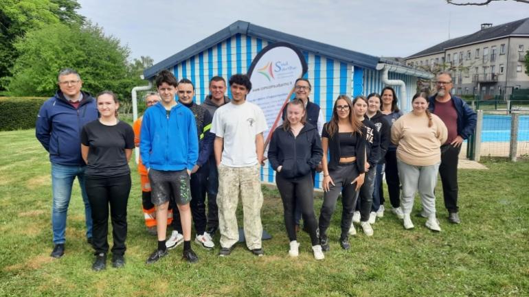 Neuf jeunes filles et garçons ont participé au chantier argent de poche organisé par la Communauté de communes Sud Sarthe du 13 au 17 avril 2026 à Mayet. Encadrés par Brigitte et Jérôme, des agents de la commune, ils ont peint le chalet des surveillants de baignade à la piscine de Mayet.