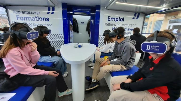 Les élèves ont pu suivre un parcours de découverte des métiers au sein de l’Orientibus (véhicule aménagé avec des tablettes et casques de réalité virtuelle), rencontrer des spécialistes de l’orientation, et échanger avec des professionnels de différentes filières (pompiers, chargée de communication, fleuriste, etc.) et des organismes de formation.