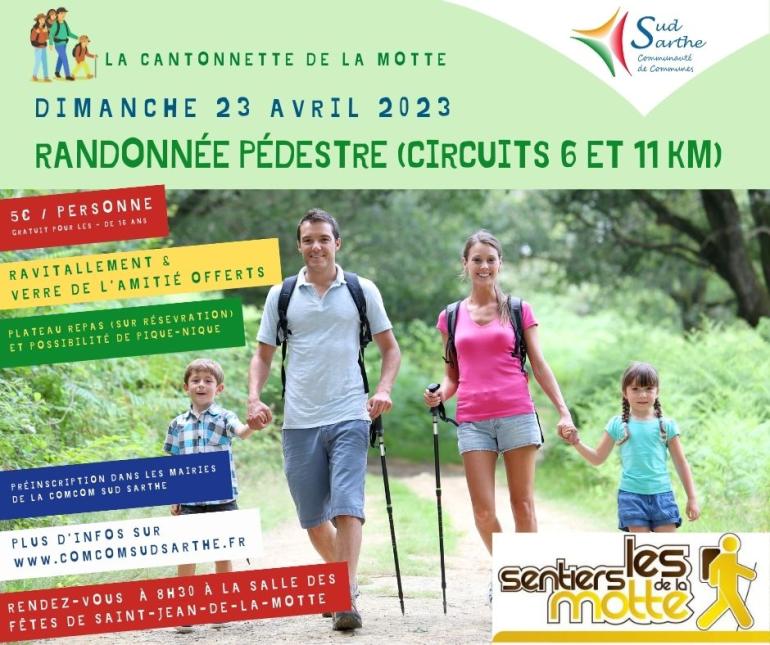Cette année la Cantonette est organisée à saint Jean de la Motte. La Communauté de Communes Sud Sarthe, la Commune de Saint Jean-de-la-Motte et l’ association des Sentiers de la Motte donnent rendez-vous aux amateurs de randonnée pédestre le dimanche 23 avril à partir de 8h 30 à la salle des fêtes de Saint Jean de la Motte.