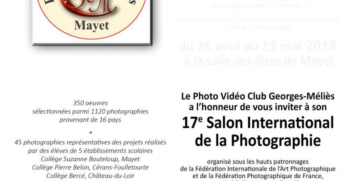 350 oeuvres provenant de 16 pays, 45 clichés représentatifs des projets des élèves de 5 collèges et 50 photos signées par les membres du Photo vidéo club Georges-Méliès de Mayet ! Telles sont les oeuvres proposées à l'occasion de la 17e édition du Salon international de la photographie. Marc Blachère, président de l'association dévoile les coulisses de l'événement prévu du 28 avril au 13 mai 2018 à à la salle des fêtes de Mayet.